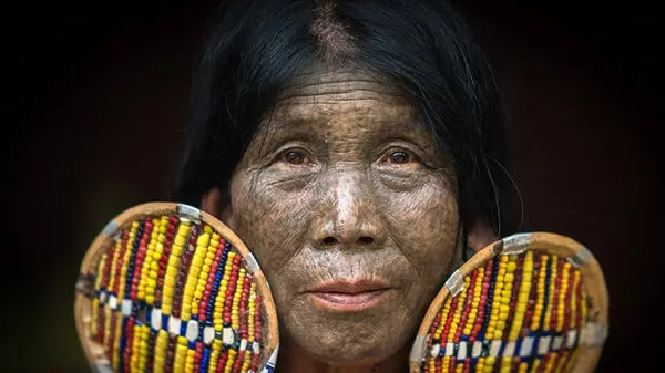 رکنا: زنان قبیله ای در میانمار طبق یک سنت قدیمی برای اینکه ربوده نشوند، در سن نوجوانی صورتشان خالکوبی شده و گوشواره های بزرگی به گوششان آویخته می شود.