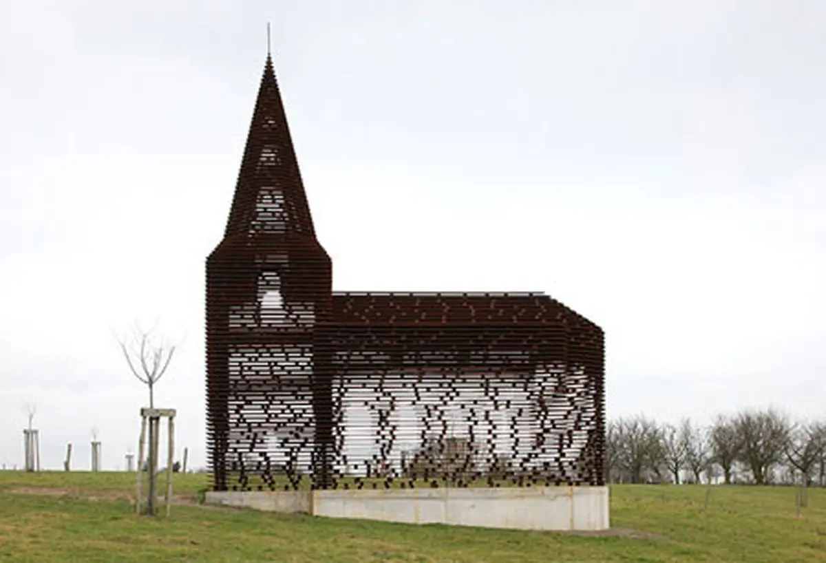 کلیسای شفاف بلژیک توسط معماران با استعداد بلژیکی آرنوت ون وارنبورگ و پیتارجن جان ججز طراحی شده است. این ساختمان لایه لایه ای از حدود ۱۰۰ لایه و ۲۰۰۰ ستون از جنس فولاد ساخته شده است. ساختمان کلیسای شفاف به شکل کلیسا های سنتی است. این ساختمان منحصر به فرد مانند یک سازه ی مدرن با دیوارهای شفاف است.