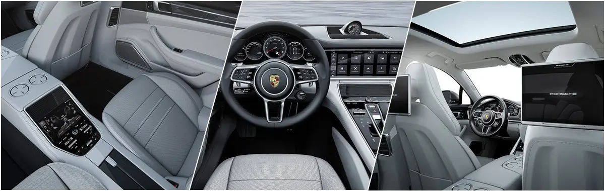 پانامرا توربو Executive همچنین برای فضای داخلی هم گزینههای فراوانی را ارائه میکند. برای تودوزی این خودرو 9 چرم مختلف قابل انتخاب بوده و خریداران میتوانند از بین تریمهای مختلف چوب، آلومینیوم و یا فیبر کربن یکی را انتخاب کنند. شیشههای عایق صدا (1240 دلار) که موجب سکوت کابین میشوند، گرمکن، تهویه و ماساژور برای صندلیهای جلو و عقب (4060 دلار) و سیستم اطلاعاتی-سرگرمی برای سرنشینان عقب (2630 دلار) نیز از دیگر آپشنهای داخلی پورشه پانامرا هستند.