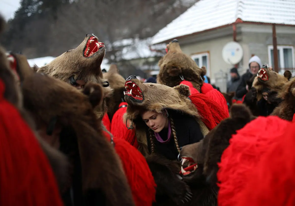 " استویان" عکاس رویترز تصاویر جالبی از این مراسم عجیب در رومانی گرفته است . بنا بر باورهای قدیمی پوشیدن لباس خرس و رقص سبب می شود تا شیاطین و رویدادهای بد از این روستا دوری کنند.
