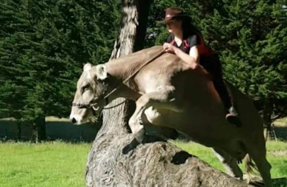 رکنا: دختر امریکایی که پدر و مادرش برای او اسب نخریدند در حرکتی جالب گاوسواری می کند.