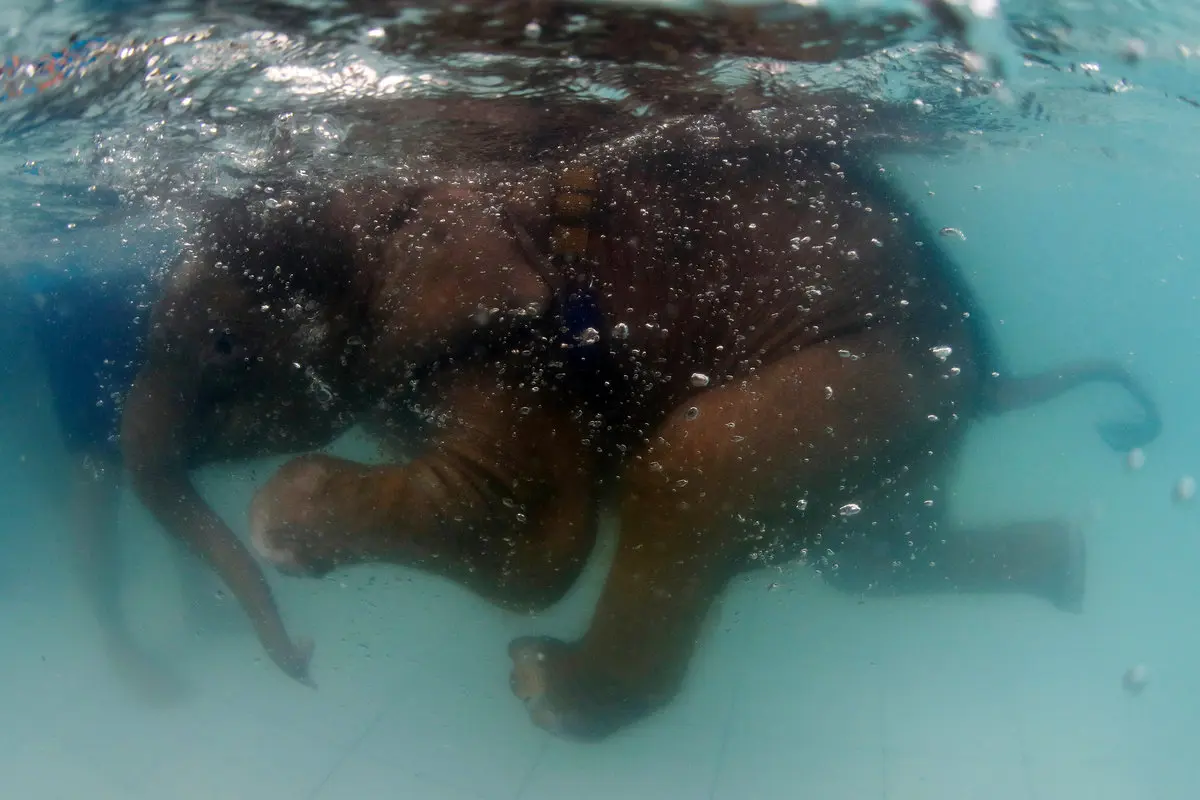 رکنا: بچه فیل پنج ماهه در مرکز توانبخشی حیوانات تایلند روند بهبود خود را سپری میکند.
