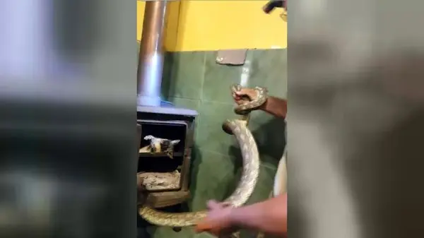 ماری که همراه با شکارش در شومینه گرفتار شد! +فیلم