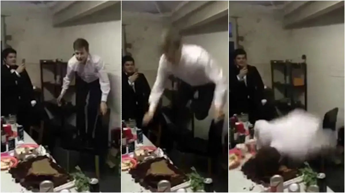 رکنا: پسر انگلیسی در جریان یک مهمانی دوستانه پس از مصرف الکل تصمیم به پرش با صورت روی یک کیک مهمانی را گرفت .