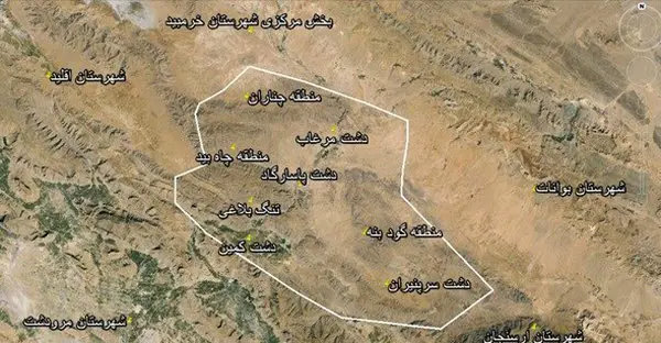 وی بابیان اینکه شهرستان پاسارگاد و بخش مشهد مرغاب در شمال استان فارس، در منطقه کوهستانی قرار گرفته، این منطقه را شامل چندین دشت میان کوهی دانست که از راه چند دره و تنگ کوهستانی به یکدیگر مرتبط می شوندو میانگین ارتفاع این مناطق 1850 متر از سطح دریا است.