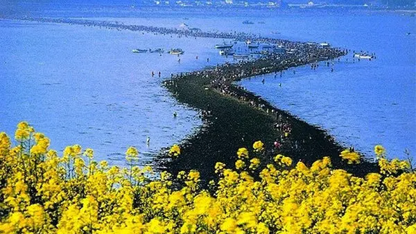 جیندو مجمع الجزایری متشکل از 250 جزیره است که جزیره جیندو سومین جزیره بزرگ کره است. هرسال در پایان ماه فوریه و دوباره در اواسط ماه ژوئن، جزر و مد بسیار پایین موجب پیدایش یک گذرگاه طبیعی به طول 2.9 کیلومتر و 10-40 متر عرض می شود که جزیره اصلی جیندو را به جزیره کوچک مودو در جنوب جیندو وصل می کند. این گذرگاه یک ساعت باقی می ماند و دوباره به زیر آب می رود.این پدیده هرسال توسط مردم محلی در جشنواره «راه آبی جیندو» گرامی داشته می شود و بازدیدکنندگان و گردشگران برای تماشای این پدیده جمع می شوند و در این مسیر میان دریا راه می روید.