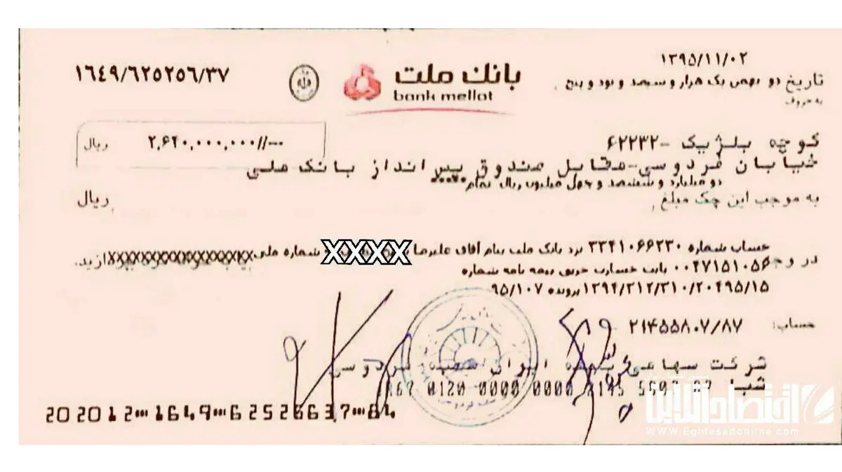 نخستین چک پرداخت خسارت ساختمان پلاسکو +عکس