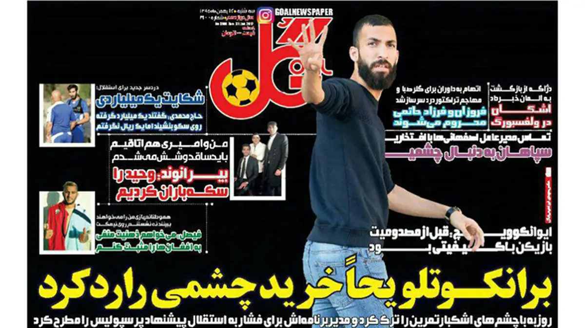 تصاویر نیمصفحه روزنامههای ورزشی دوازدهم بهمن به مسائل مختلف ورزشی به ویژه فوتبال اختصاص دارد.