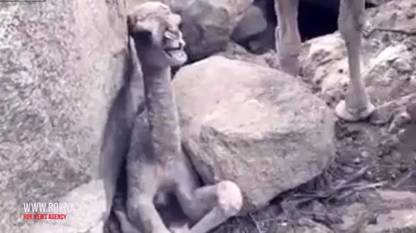 فیلم نجات بچه شتر از میان صخره ها توسط یک شکارچی + فیلم
