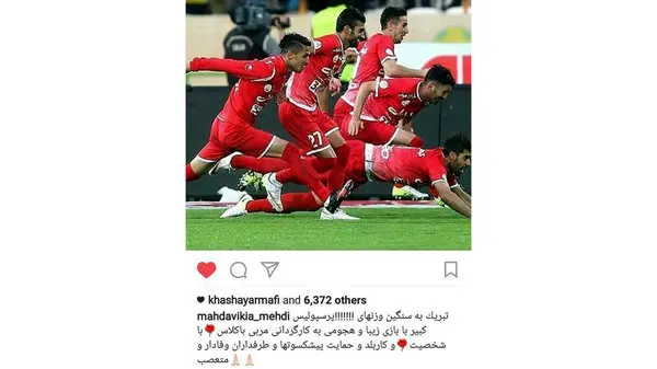 "تبریک به سنگین وزن های پرسپولیس کبیر با بازی زیبا و هجومی به کارگردانی مربی باکلاس، با شخصیت و کاربلد و حمایت پیشکسوتها و طرفداران با تعصب و وفادار"