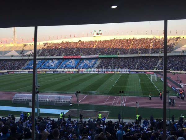 استقلالی ها بعد از این که بازیکنان السد زمین آزادی را ترک کردند از طرح موزاییکی خود که با رنگ سفید و آبی روی آن نام ایران حک شده بود رونمایی کردند.