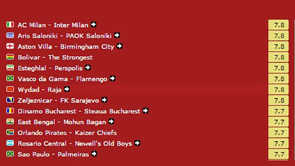 براساس این گزارش دربی سرخابی های تهرانی با نمره 7.8 هم رده دربی میلان بین اینتر میلان و آث میلان قرار دارد.