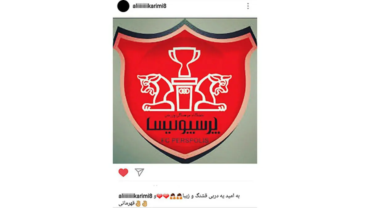 علی کریمی پیشکسوت تیم ملی فوتبال کشورمان و باشگاه پرسپولیس که این روز ها در محل تمرین و اسکان پرسپولیسی ها بیش از گذشته حاضر می شود . چند ساعت مانده به دربی 84 با انتشار پستی در فضای مجازی به این دیدار حساس واکنش نشان داد.