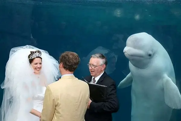 دلفینی که شاهد عقد عروس و داماد بود+عکس