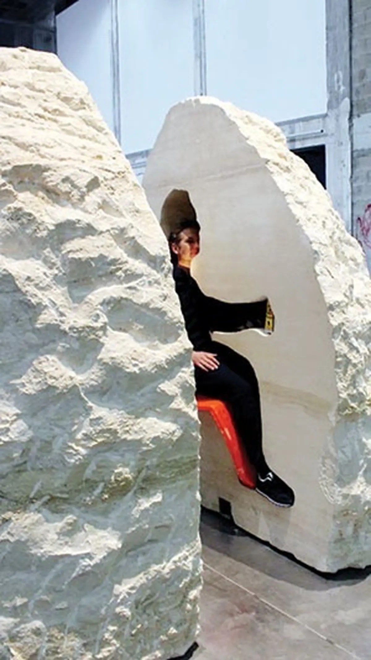 رکنا: هنرمند فرانسوی طی یک پرفورمنس هر روز چند ساعت خود را داخل یک تکه سنگ برای ۸ روز حبس کرد.
