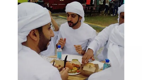 رکنا: تصویری که در این گزارش مشاهده می کنید مربوط به شیخ حمدان بن محمد، پسر حاکم دبی در حال سرو یک همبرگر بسیار متفاوت در یک جشنواره است.