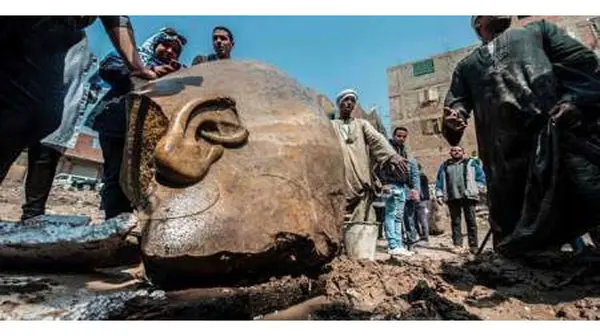 رکنا: یک مجسمه هشت متری که گفته می شود متعلق به رامسس دوم فرعون مصر است، در حفره آبی در قاهره پیدا شده است.