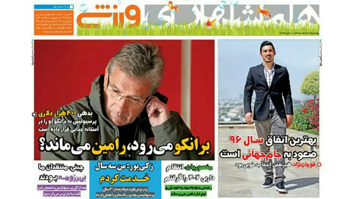 برانکو می رود، رامین می ماند؟/ استقلال صدرنشین آسیا،پرسپولیس صدرنشین ایران / پیشخوان روزنامه های ورزشی