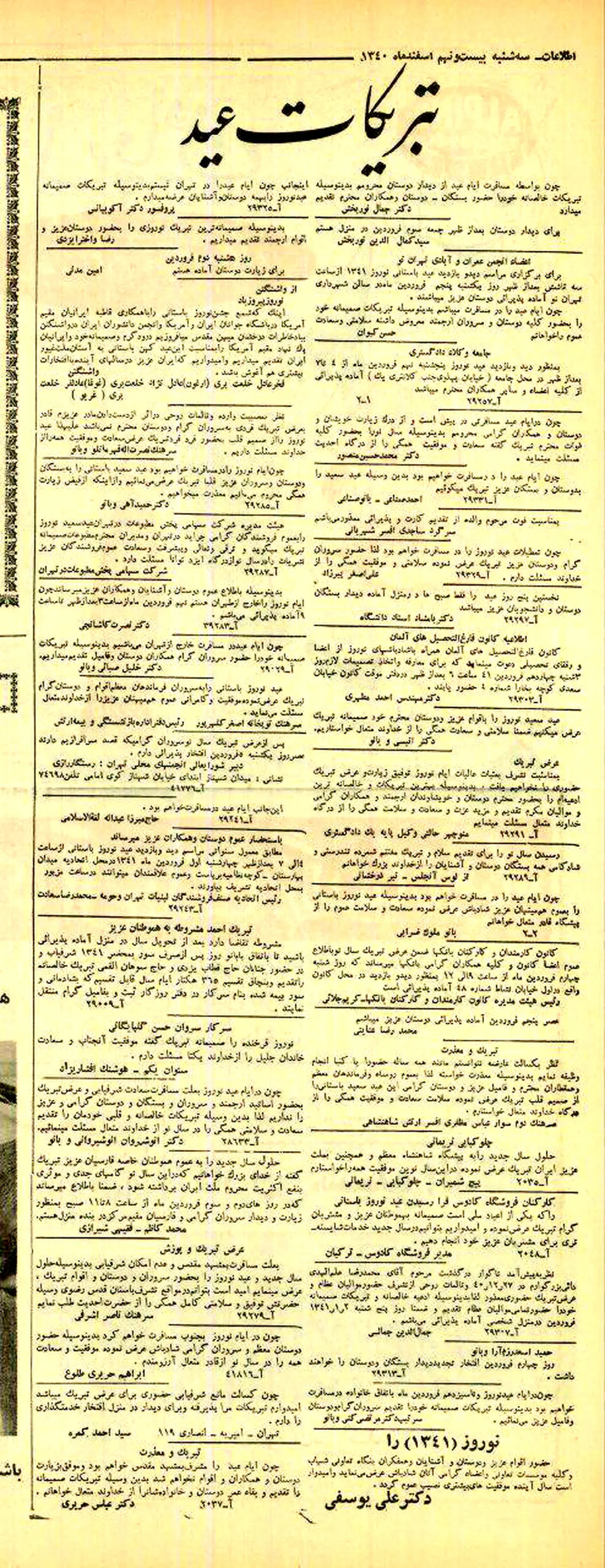 در سال 1340 تبریکات نوروزی انتشار یافته در روزنامه ها رنگ و بوی جالبی داشتند.