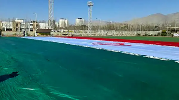 اهتزاز بزرگترین پرچم ایران در بازی با چین