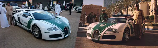 سریعترین اتومبیل پلیس جهان که در خیابانهای دبی تردد میکند، «بوگاتی وِیرون» است که البته باید توجه داشت تنها 14 دستگاه از این خودرو ساخته شده است و هماکنون یکی از آنها به عنوان پلیس دبی در خیابانهای این شهر گشتزنی میکند.