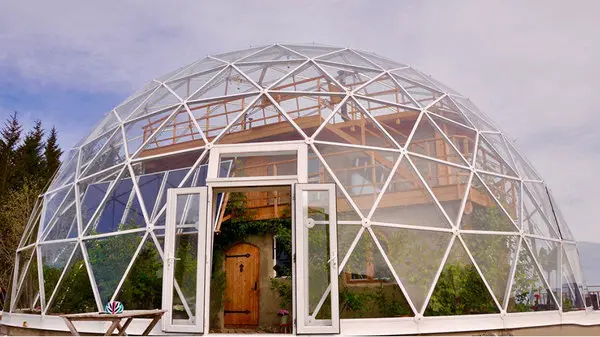 معماری این خانه شبیه به خانه های قطبی است با این تفاوت که دور تا دور آن را شیشه محصور کرده است. شیشه هایی به شکل مثلث های کوچک که در کنار هم حالت کروی تشکیل داده اند.