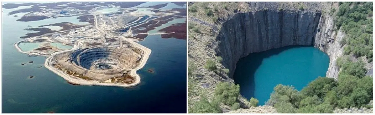 برخی از این گودال های عظیم و غول پیکر به وسیله انفجار و ماشین آلات عظیم تراشیدن پوسته ی زمین بوجود آمده اند.