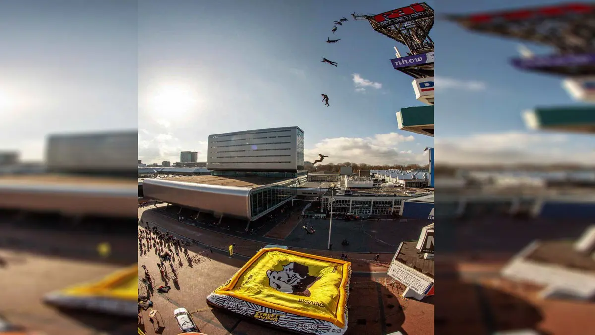 امیر بدری بدلکار ایرانی سینما با پرش از 60 متری در هلند رکورد زد+عکس