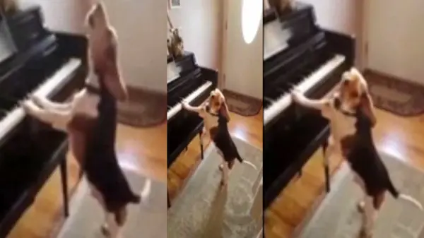 در این ویدیو "بیگل" با تشویق صاحبش که در حال فیلمبرداری از اوست، به کلیدهای پیانو ضربه می زند و با صدایی بلند و ممتد پارس می کند و به عبارتی می خواند.