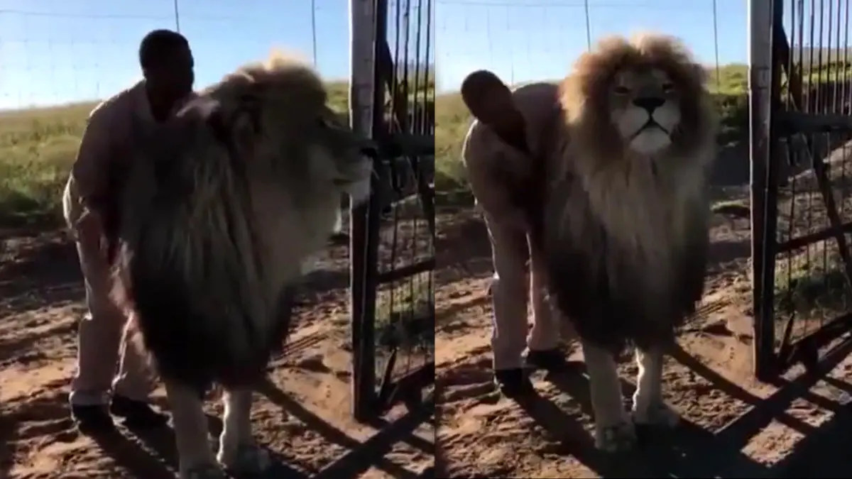 این شیر بعد از ماساژ حاضر به بازگشت به قفس خود نبود + فیلم
