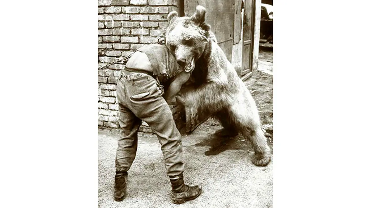 رکنا: عکسی که می بینید مربوط به سال 1330 در تهران است، این عکس مردی را در حال کشتی گرفتن با یک خرس نشان میدهد.
