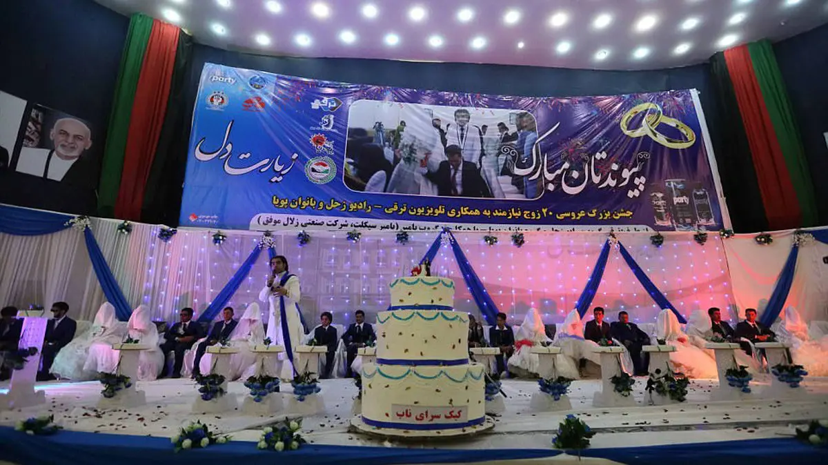 مراسم عروسی همزمان 34 زوج افغانی در روز پرنده های عاشق + عکس های زیبا