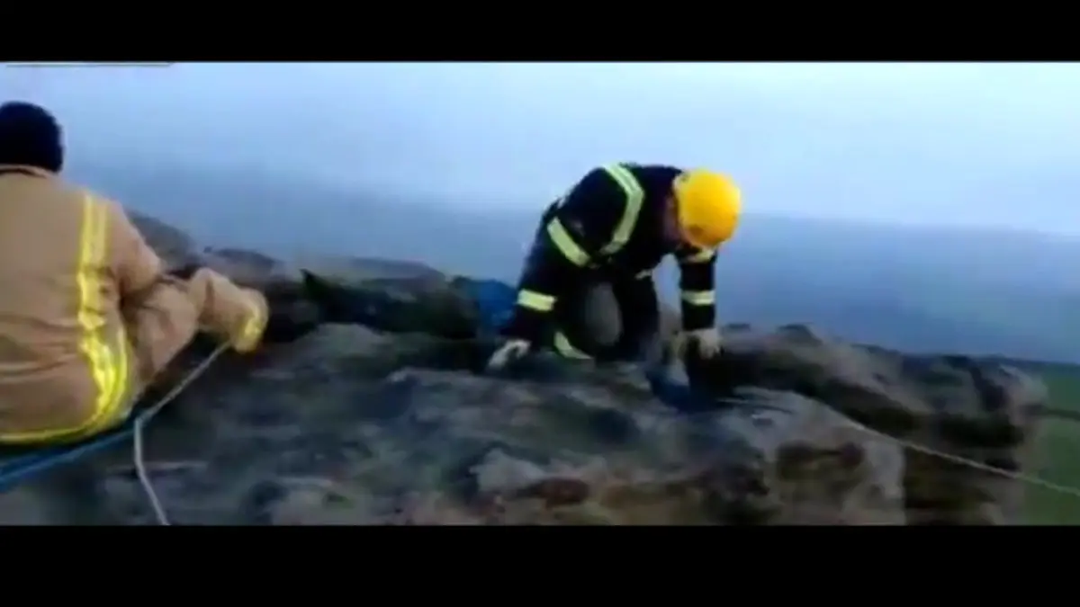 رکنا: یک گوسفند ۵۰ کیلویی که بین صخرههای سنگی تادموردن انگلیس گرفتار شده بود توسط نیروهای آتش نشانی نجات پیدا کرد.