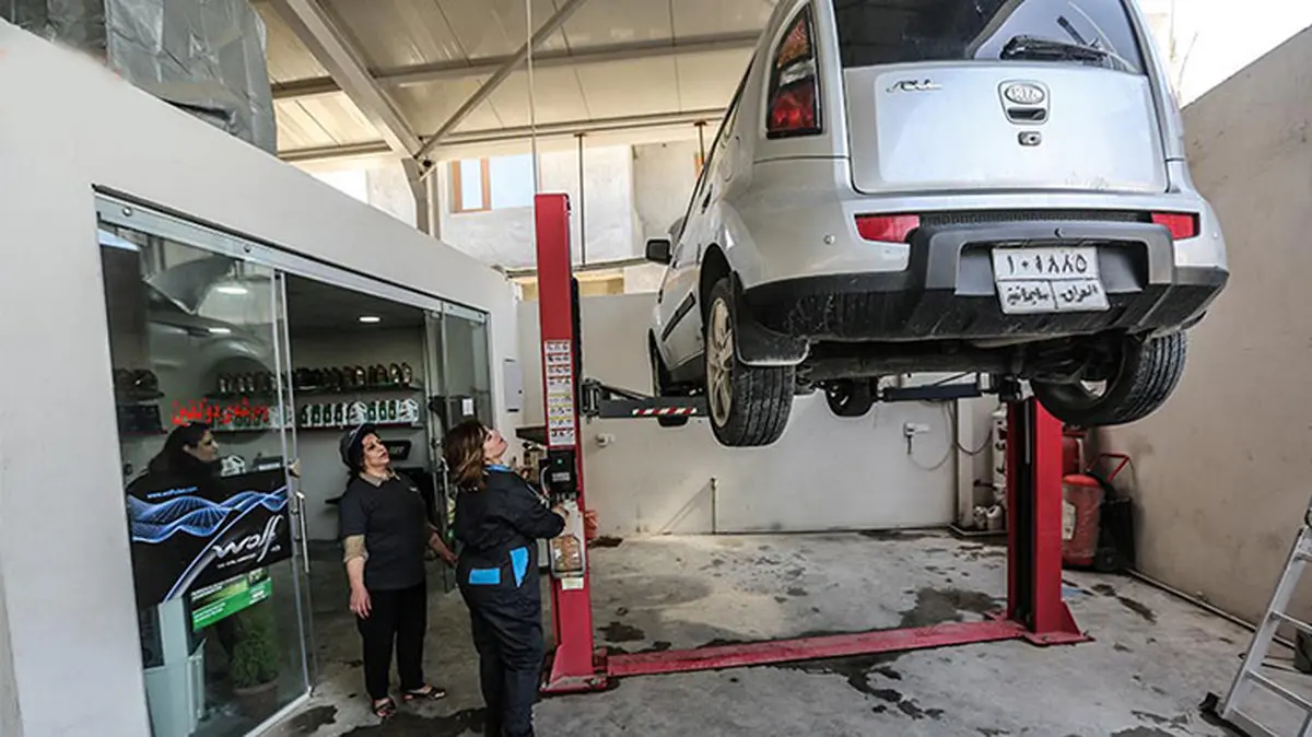رکنا: شادیه حسن، زن کُرد از اهالی شهر سلیمانیه در کردستان عراق پس از آنکه در انتخابات پارلمانی عراق رأی نیاورد وارد شغل تعویض روغن خودروها شده است.