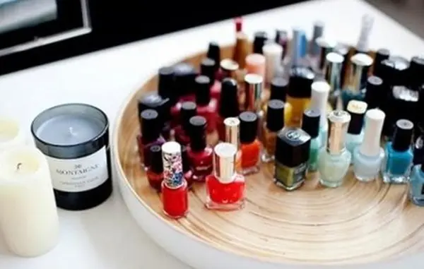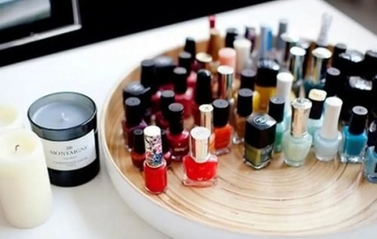 برای چیدمان لاک روی میز می توانید از ایده های ساده و کاربردی استفاده کنید. اگر میز آرایش شما کشو یا طبقه خالی دارد، بهتر است که آن را به شیشه های لاک اختصاص دهید تا سطح میز توالت خلوت تر باشد.