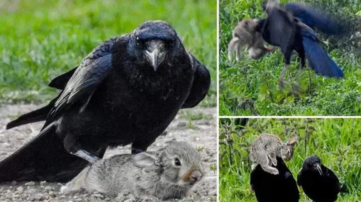 لحظه حمله کلاغ های سیاه وحشی و گرسنه به خرگوش نگون بخت را ببینید + تصاویر