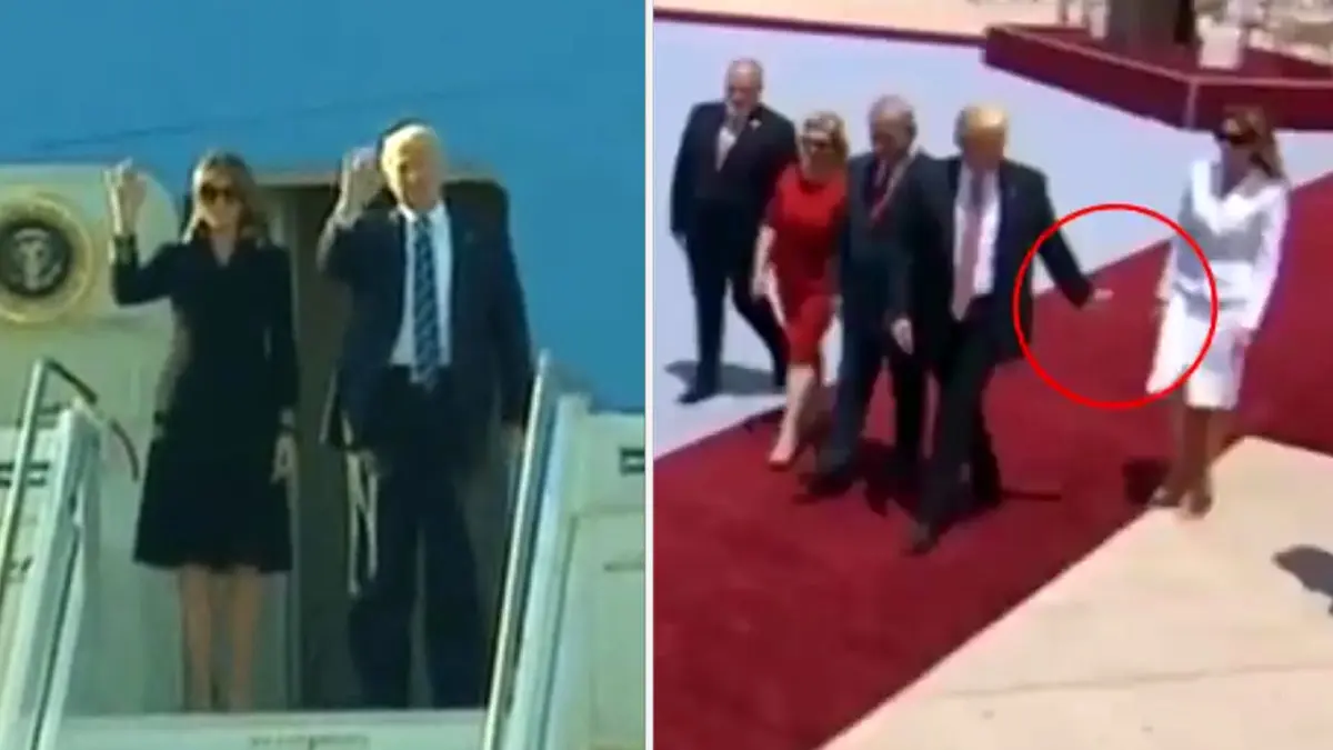 در ویدئو منتشر شده مشاهد می کنید که او در دو سفر اخیر خود از گرفتن دست دونالد ترامپ خودداری می کند. او در سفر به اسرائیل دست ترامپ را پس می زند. او همچنین در سفر رم نیز هنگامی که در حال پایین آمدن از هواپیما هستند و دونالد ترامپ قصد دارد دست او را بگیرد سریعا موهایش را با همان دست پشت گوش می زند تا دست دونالد ترامپ را نگیرد. این نوع رفتار جنجال هایی را در فضای مجازی و رسانه ای دنیا به همراه داشته است.برای ورود به کانال تلگرام ما کلیک کنید.