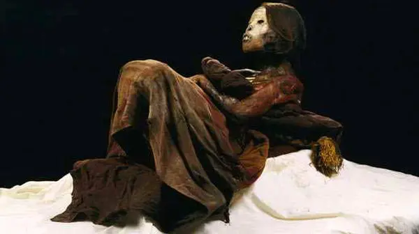 رکنا: این مومیایی 500 ساله که در پرو کشف شده، دوشیزه یخی نامدارد. بیابان های خشک پرو این امکان را فراهم میآورند که اجساد موجودات در عمق اندکی از خاک خشک شوند و طی روندی طبیعی اینچنین باقی بمانند.