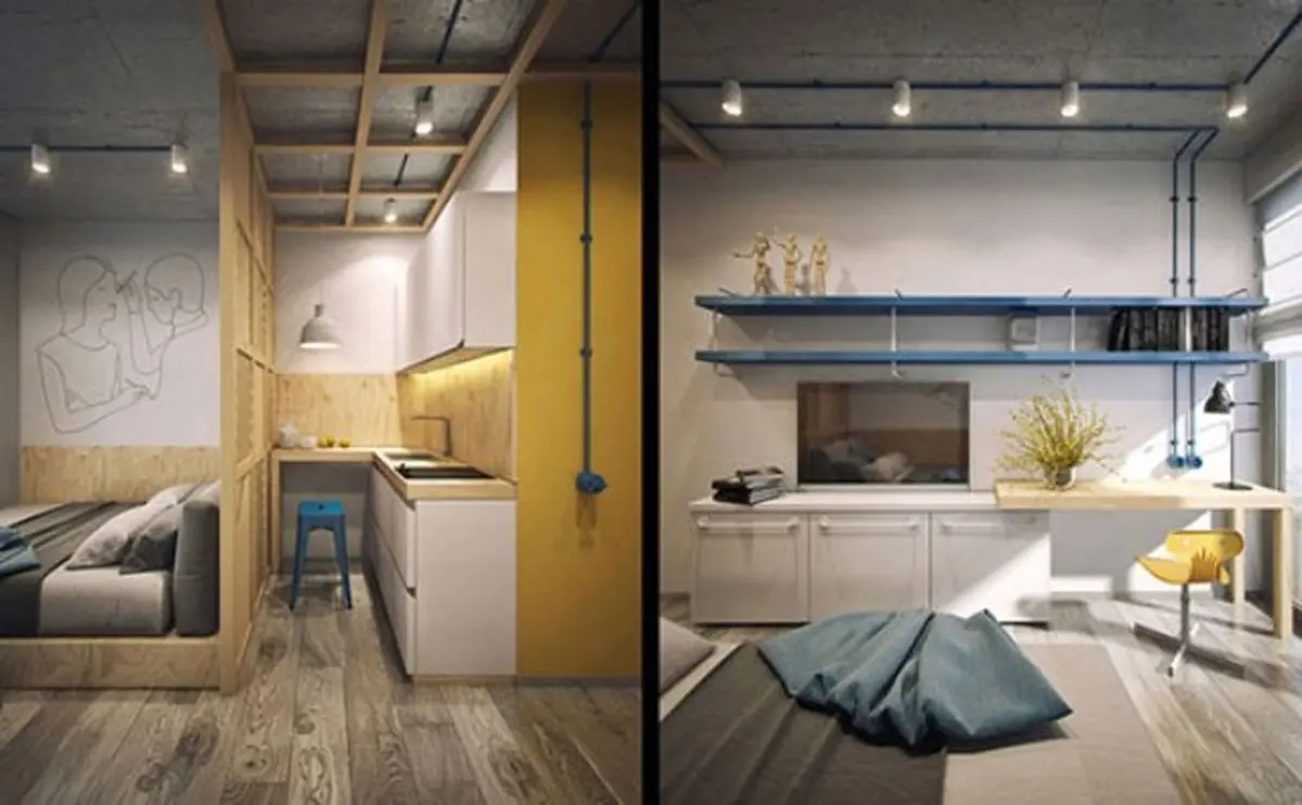 در اینجا چند نمونه آپارتمان اورده شده که شامل فضا هایی برای کار، استراحت، پخت و پز و...هستند. با کمی خلاقیت و استفاده از مبلمان مدرن می توان آپارتمان هایی با این ویژگی داشت.