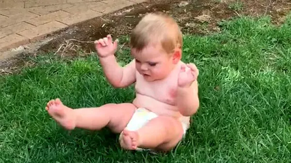 واکنش جالب یک کودک که از چمن می ترسد + فیلم