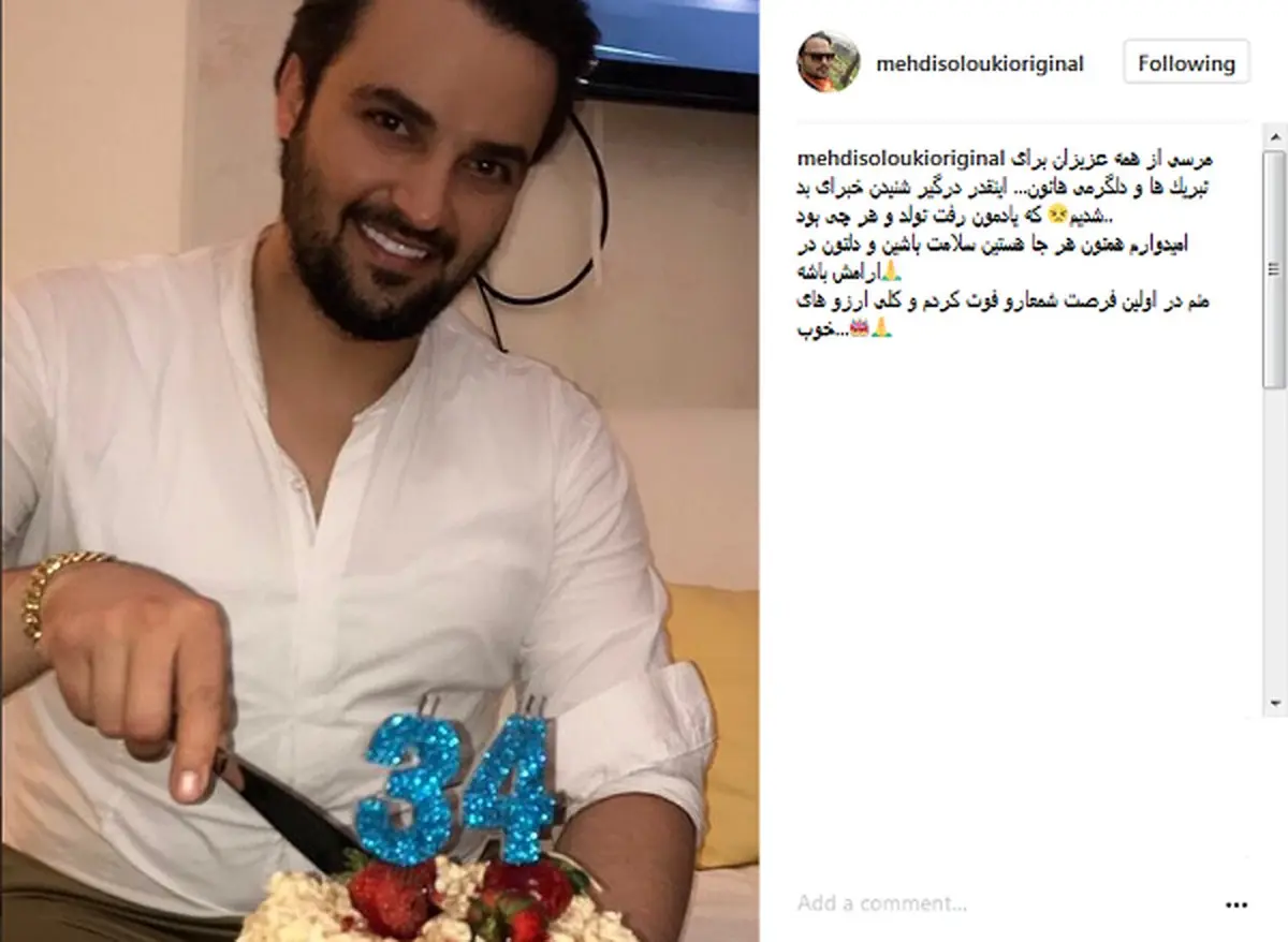 رکنا: مهدی سلوکی بازیگرسینما وتلویزیون عکس تولد 34 سالگی خود رادرصفحه اینستاگرام خود گذاشت.