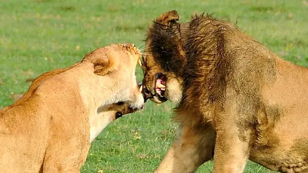 شیر ماده عصبانی با نعره های قوی اش به شیر نر میزان ناراحتی و عصبانیت خود را به خوبی در تصاویر نشان می دهد.