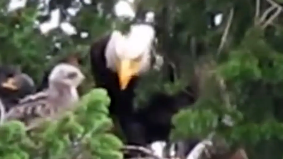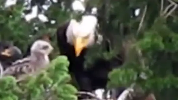 نگهداری عقاب سر سفید از جوجه قوش + فیلم