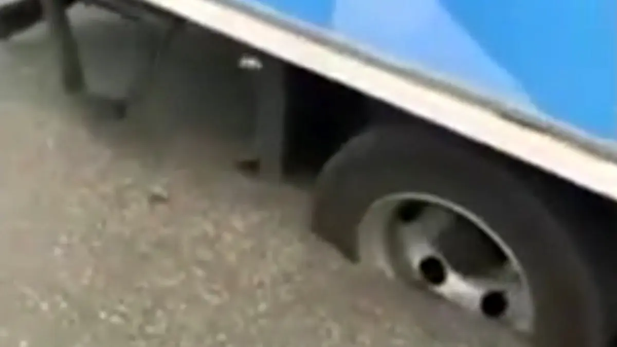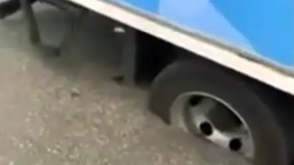 گرما آسفالت را ذوب کرد و کامیون در آن فرو رفت+ فیلم