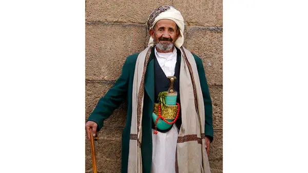 به گفته همسر پیرمرد، وی طبق یک عادت 5 ساله ، در روزهای آدینه به وقت نماز این لباس را به تن می کند و خنجر و کمربندش هم زینت اوست.