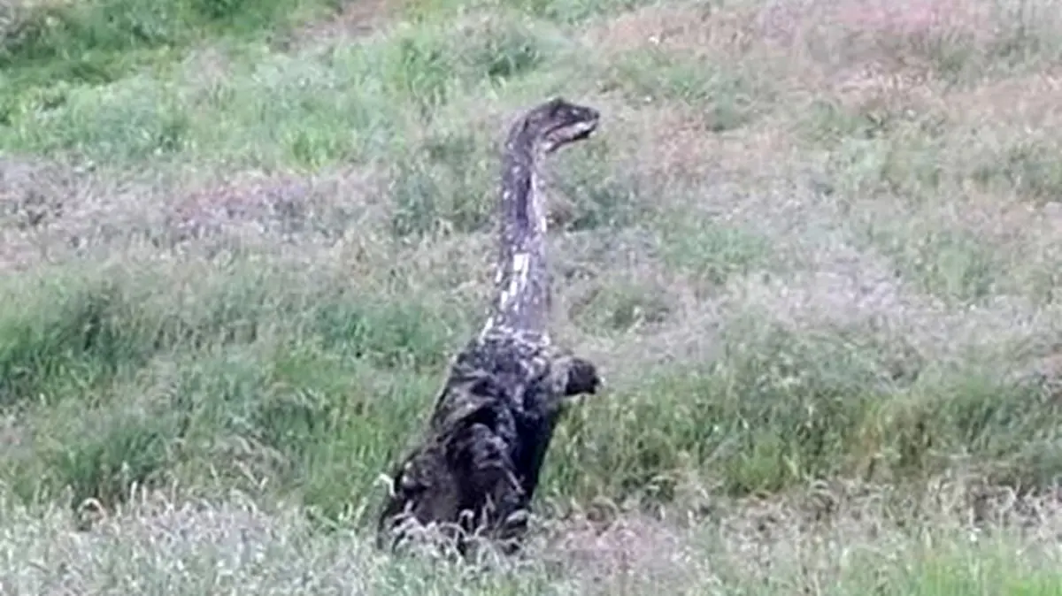 ساکن محلی اهل منطقه "استیر لینگ شر" اسکاتلند هنگامی که مشغول پیاده روی بود نمی دانست با صحنه ای عجیب روبرو خواهد شد. "جیمی رایت" 66 ساله که در اطراف منزلش در یک مزرعه مشغول پیادهروی با سگش بود ناگهان با موجود عجیبی شبیه به هیولای افسانه ای "لخ نس" مواجه شد. وی بلافاصله با تلفن همراهش یک عکس از این موجود عجیب تهیه کرد.