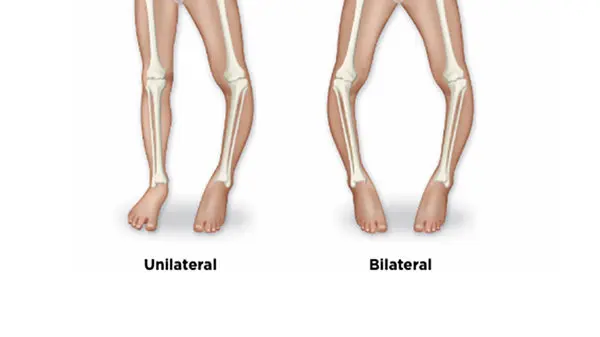 این عارضه بسیار قابل تشخیصه. وقتی بایستید و پاها و مچ پاها را کنار هم قرار بدید زانوهایتون با هم برخورد نمی کنند. پاها به صورت پرانتزهای متقارن به نظر می رسند.