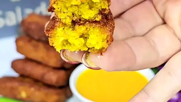 بعد داخل نایلون بریزید و توی فریزر قرار بدین که یخ بزنه. بعد نایلون رو جدا کنید و به اندازه های دلخواه برش بزنید و بعد داخل روغن داغ سرخشون کنید. توی روغن زیاد قاشق نزنید که وانره. بذارین یه طرف حسابی سرخ بشه و بعد برگردونید.