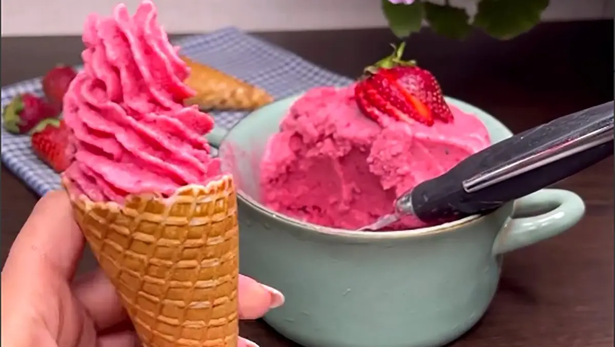 بستنی توت فرنگی به راحتی درست کن + فیلم