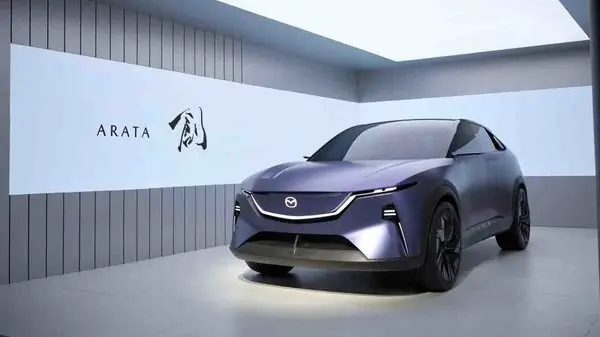 احتمالاً مزدا از لوگوی جدید خود برای خودروهای برقی یا سرمایهگذاری مشترک این برند در چین استفاده میکند. شاسیبلند آراتا در نمایشگاه خودرو چین ۲۰۲۴ با لوگوی سادهای که در جلوی خودرو روشن شده بود، رونمایی شد.